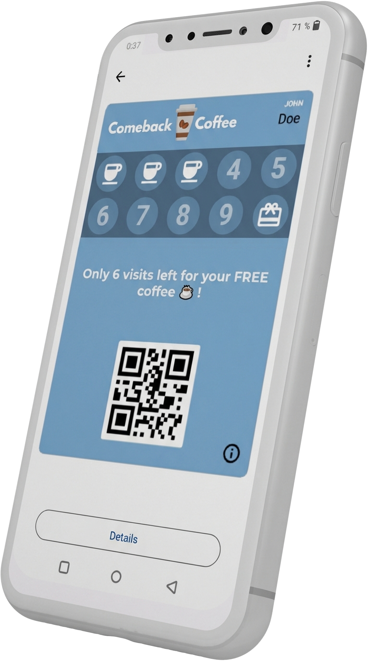 Your customers will download the card in less than 30 seconds, and it will be saved and they can start accumulating visits.
