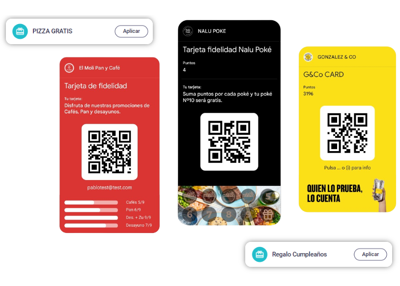 Crea diferentes tipos de promociones (sellos, puntos, niveles) y envía cupones a tus clientes