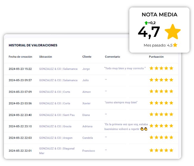 Revisa al instante como evoluciona tu nota media en google o consulta todas tus reseñas individualmente.